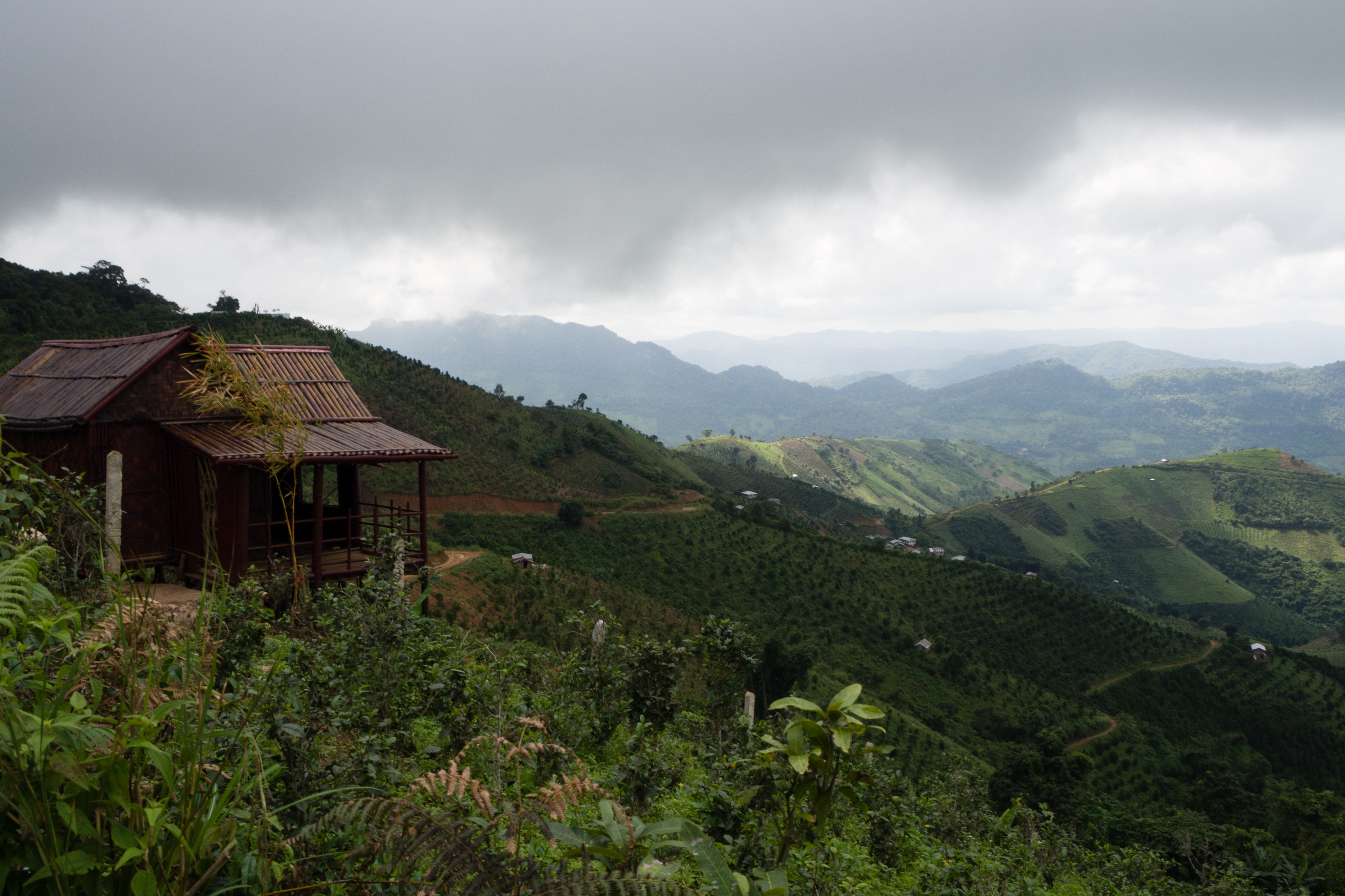 In totaal leggen we zo’n 61 kilometer af in drie dagen, een afstand die goed te doen is voor ervaren trekkers, al denken onze groepsgenoten daar anders over. Ondanks de vele pauzes die we nemen, waar we telkens thee en koekjes krijgen voorgeschoteld, is een klaagzang bij sommigen een echte must. Het gebrek aan deftige wandelschoenen en het regenweer die we rond de middag van de twee de dag krijgen te verduren, doet daar geen goed aan. Integendeel, heel wat slippartijen zorgen voor een wel erg modderige outfit, maar als we onze Duitse hiker met zijn sandalen dertig centimeter in de chocoladestroom zien verdwijnen, kunnen we een lach toch niet onderdrukken. ‘Careful, slippery!, waarschuwt Phyo voor de zoveelste keer met een lachje, waarbij hij amper kan verbergen dat hij geniet van de onhandige manoeuvres van onze groep. Hoe vaak enkele jonge reizigers ook mogen vloeken als ze voor de zoveelste keer een verkeerde stap zetten, uitglijden of zelfs een spinnenweb in hun gezicht krijgen, even vaak genieten ze van de prachtige groene heuvels van het berglandschap.